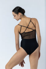 Le justaucorps LILOU, pièce signature de la collection, se distingue par son mélange audacieux de matières.