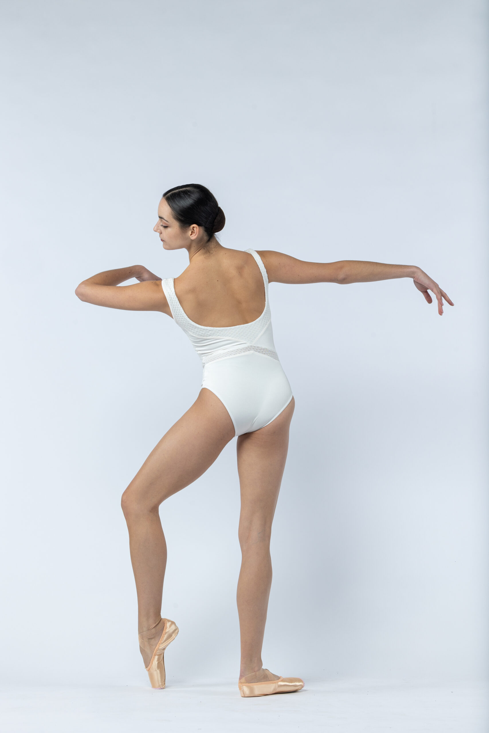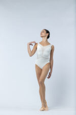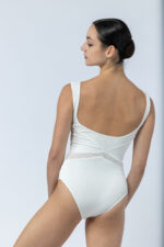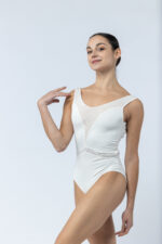 Ce justaucorps réunit structure et légèreté grâce à des découpes audacieuses et un jeu de matières subtil.