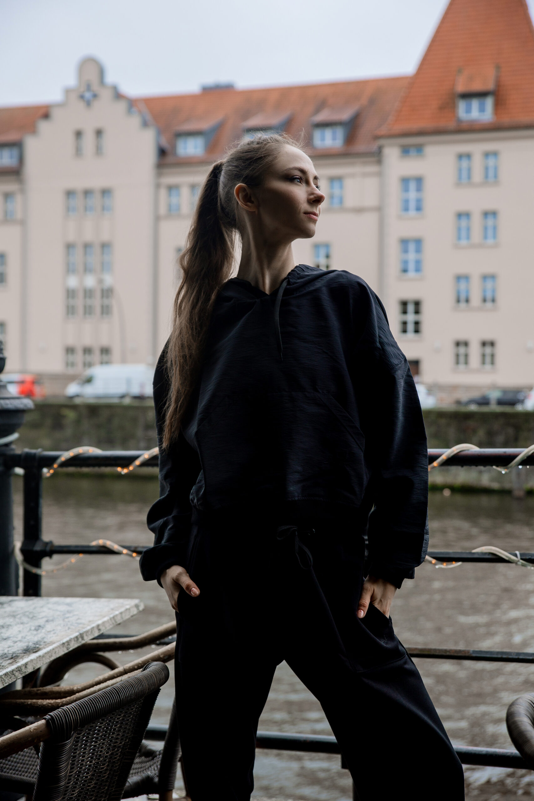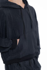 Hoodie with kangaroo pocket, loose shape.
